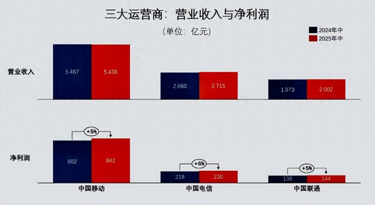 根據公開的財報,三大運營商2024年和2025年第一季度的業績,雖然總收入和利潤還在漲,但那個增長的速度,明顯是踩了剎車。