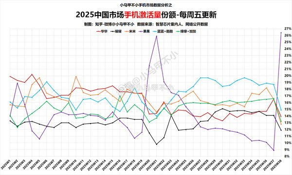 此次增長(zhǎng)正值iPhone新品發(fā)布,市場(chǎng)分析認(rèn)為,新機(jī)預(yù)售預(yù)熱、渠道備貨以及以舊換新補(bǔ)貼政策加碼,共同推動(dòng)了蘋(píng)果設(shè)備的集中激活。與此同時(shí),國(guó)產(chǎn)陣營(yíng)整體表現(xiàn)疲軟,主要品牌普遍出現(xiàn)同比下滑。