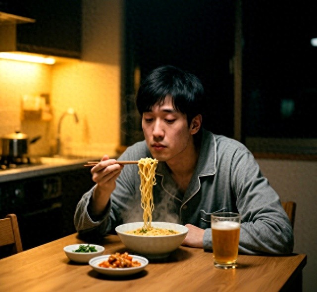他有個習慣,晚上11點下班,手機一滑,燒烤、炸雞、冰啤酒全點齊,邊吃邊刷劇。