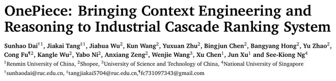 在這一背景下,來(lái)自 Shopee 的傅聰技術(shù)團(tuán)隊(duì)聯(lián)合人大高瓴學(xué)院提出了一種全新的生成式推薦模型——OnePiece 范式,這是業(yè)內(nèi)首個(gè)融合上下文工程、隱式推理和多目標(biāo)訓(xùn)練策略的生成式搜推建模框架!