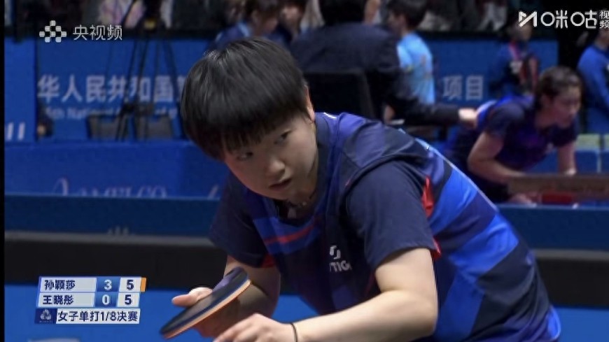 今天中午進行的第十五屆全運會乒乓球女單1/8決賽中,孫穎莎以4-1(11-4、11-5、11-7、8-11、11-4)戰勝山東隊選手王曉彤,強勢晉級八強。