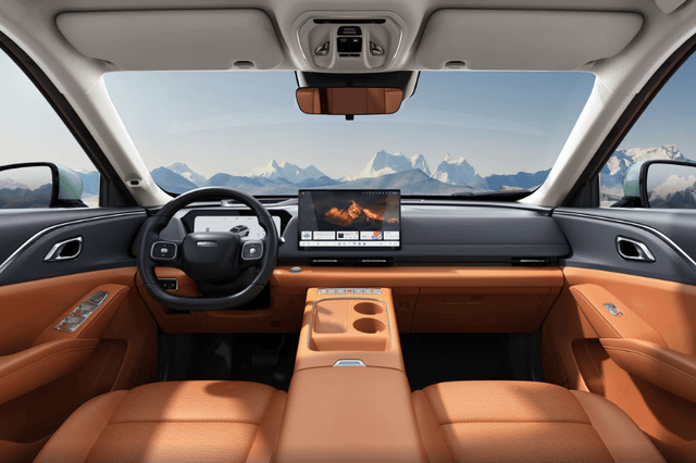內飾部分,提供峽谷棕、秋褐米、探秘黑三種內飾配色,造型平直,但是拉絲材質和磨砂面板等加入,增加層次感和視覺效果。12.3英寸液晶儀表+10英寸HUD抬頭顯示還有14.6英寸中控屏,懷擋設計,中央通道空間更規整,有無線充電和杯架以及掛鉤等實用性配置。還有64色氛圍燈、前排座椅通風按摩、主駕駛電動調節和腿托,后排座椅靠背調節、一鍵放平等配置搭載。