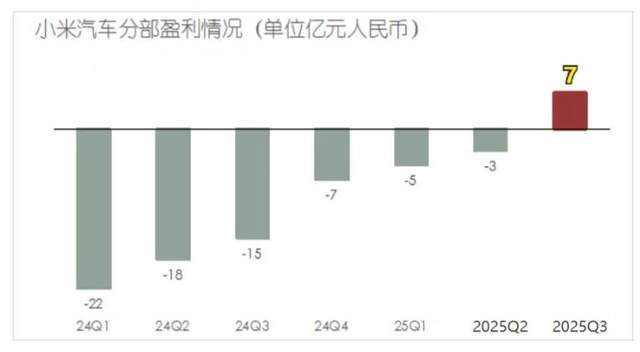 小米實際也也是在2025年第三季度,才實現的盈利,單季盈利7個,但在此之前一直在虧損。