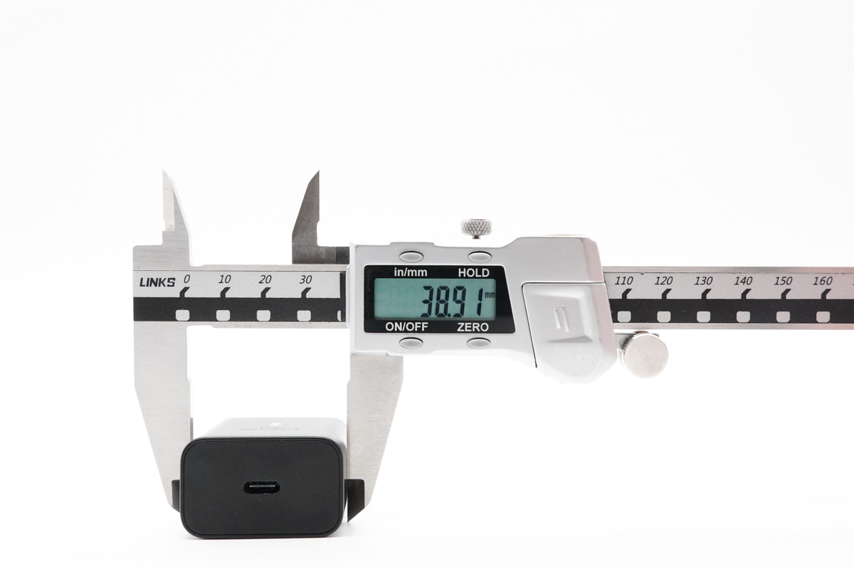 實測充電器長約為38.91mm。
