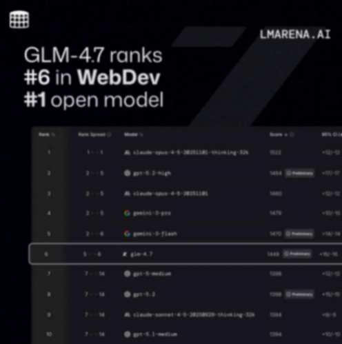 在全球百萬用戶參與盲測的權(quán)威編碼評估系統(tǒng)Code Arena中,GLM-4.7位列全球開源第一、國產(chǎn)第一,超過GPT-5.2。