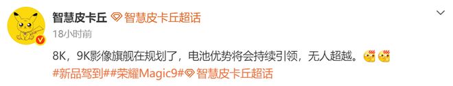比如近期有消息稱榮耀Magic9系列正在規劃8K甚至9K級別的超大容量電池,如果這個消息屬實,那么真的要把友商甩在身后。